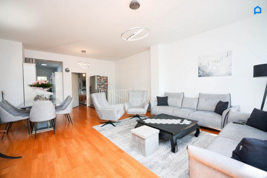Die Wohnfläche beträgt insgesamt 108,44 m² und wird durch eine Loggia mit 8,45 m², eine Terrasse mit 8,72 m² sowie eine großzügige Dachterrasse mit 38 m² ergänzt, die zur alleinigen Nutzung zur Verfügung steht.